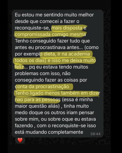 Se você assistir uma aula por dia, em cerca de 2 meses conclui todo o Reconquiste-se e o acesso é garantido por 1 ano.